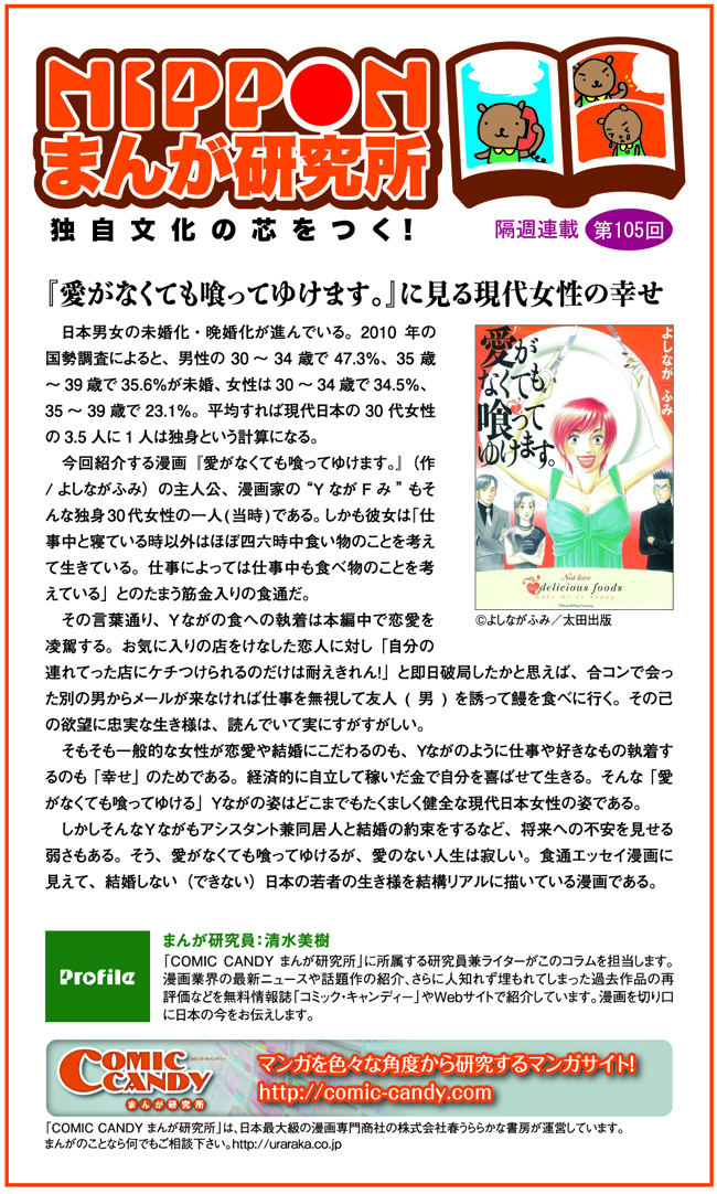 第105回 「愛がなくても喰ってゆけます。」に見る現代女性の幸せ