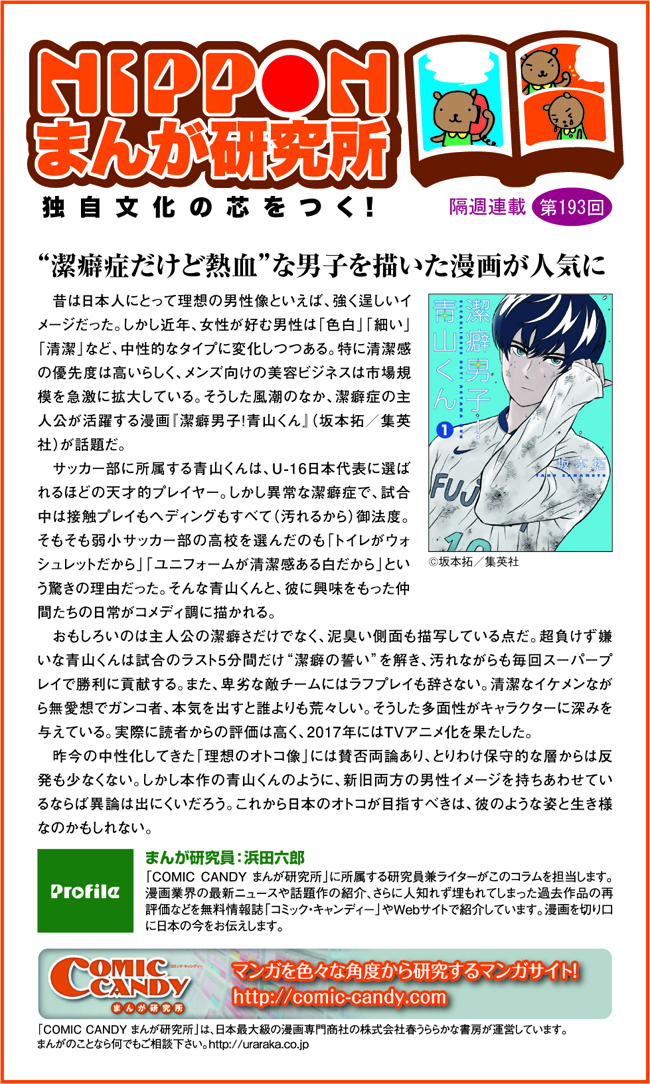 第193回 ”潔癖症だけど熱血”な男子を描いた漫画が人気に