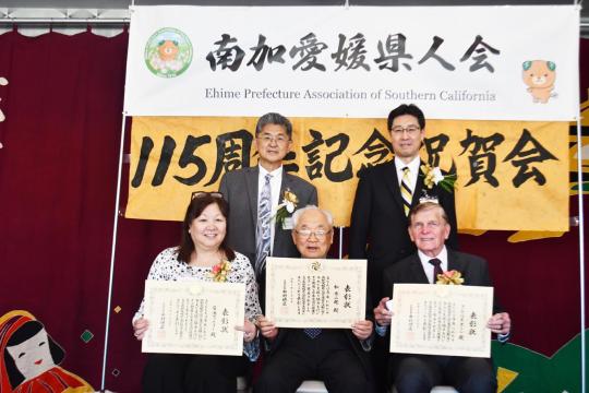 南加愛媛県人会は11月9日、モンテベロ市のクワイエットキャノンにて創立115周年記念祝賀会を開催した。会場には、愛媛県の菅規行副知事をはじめ、同県議会議員、同会会員、各県人会会長、日系コミュニティー団体代表ら約170人が出席し、節目を祝った。